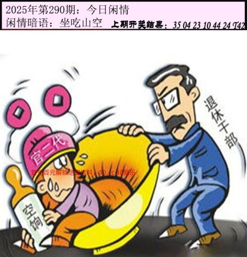 290期:今日闲情暗语:坐吃山空 解释:意思是只坐着吃,山也要空;指光是消费而不从事生产,即使有堆积如山的财富,也要耗尽。解蛇猪马猴狗龙 综合取肖:蛇猪马猴狗龙 |