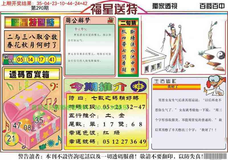 290期:绝杀5码【16.21.35.41.49】开:猪19中 |